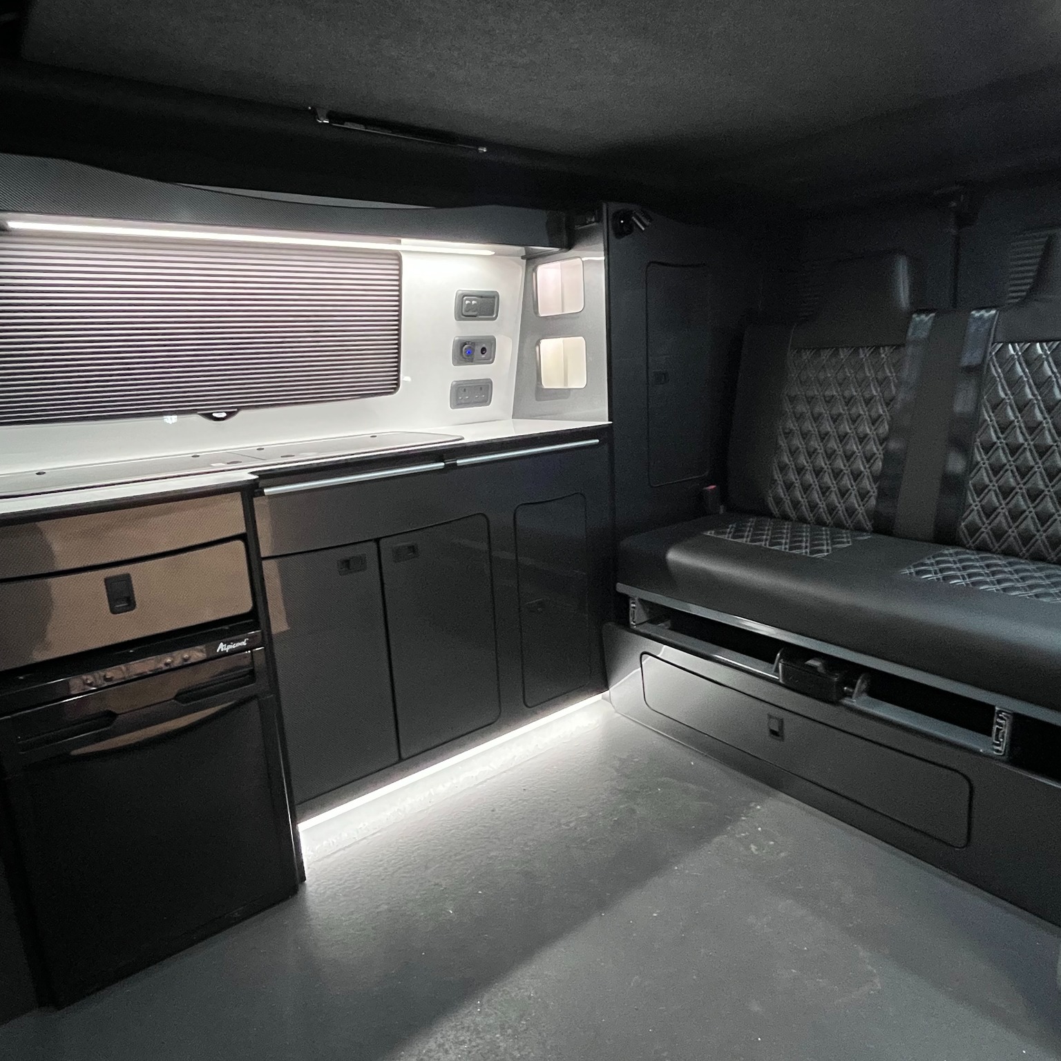 Ford Transit Custom and VW T6 campervans available with a full range of options .